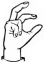 На ћирилици написано САША БИЗУМИЋ састоји се из 11 слова [?]. Исписано ћириличном једноручном азбуком за глувонеме: